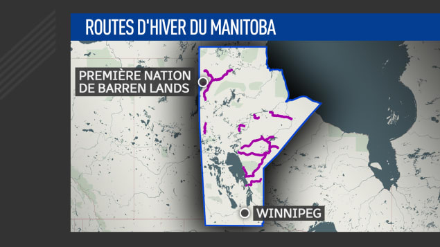 Manitoba has approximately 2100 km of winter roads that connect more than 20 communities, including the Barren Lands First Nation, located more than 900 km from Winnipeg. Photo: Radio-Canada